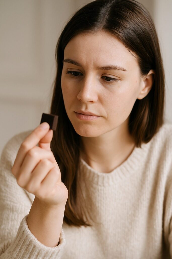 敏感な人はまずカカオ72%からはじめ、夜間ではなく日中に食べることで刺激性の影響を減らせます。